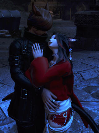 She knew that her charm would prove an effective weapon and thus would hone it through dancing. Eventually, the tribe would see fit to kick her out as a young teenager, as she sought out life beyond being another tribe's wife, not wanting to just conform for the sake of conformity. Instead, she would learn the ways of the world outside rather than be told what is and isn't. Ul'dah was not her first choice, but it would be a suitable training ground for her - to hone her charm and seductive mannerisms and get her feet wet in dance. It started as observing the current street performers before learning to emulate and even create her style. This would earn her some portion of gil, her skill growing with time. Eventually she would run into an Ishgardian noble during her travels, and the two would instantly become like sisters.